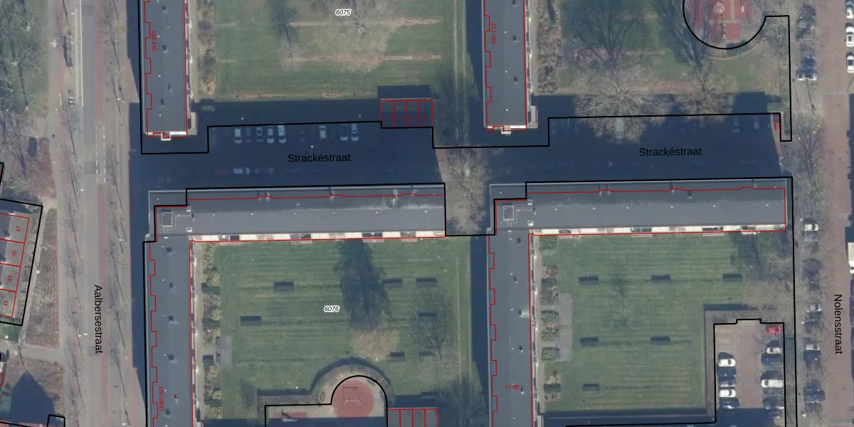 Het perceel waarop Strackéstraat 109 staat heeft een oppervlakte van 8172 m². Dit is een zeer groot perceel. De perceeloppervlakte wordt geregistreerd door het Kadaster. Gedetailleerde informatie over de maten van dit perceel kunt u vinden in het rapport Kadastrale kaart met maatvoering van Strackéstraat 109.