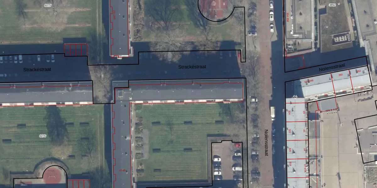 Het perceel waarop Strackéstraat 23 staat heeft een oppervlakte van 8172 m². Dit is een zeer groot perceel. De perceeloppervlakte wordt geregistreerd door het Kadaster. Gedetailleerde informatie over de maten van dit perceel kunt u vinden in het rapport Kadastrale kaart met maatvoering van Strackéstraat 23.