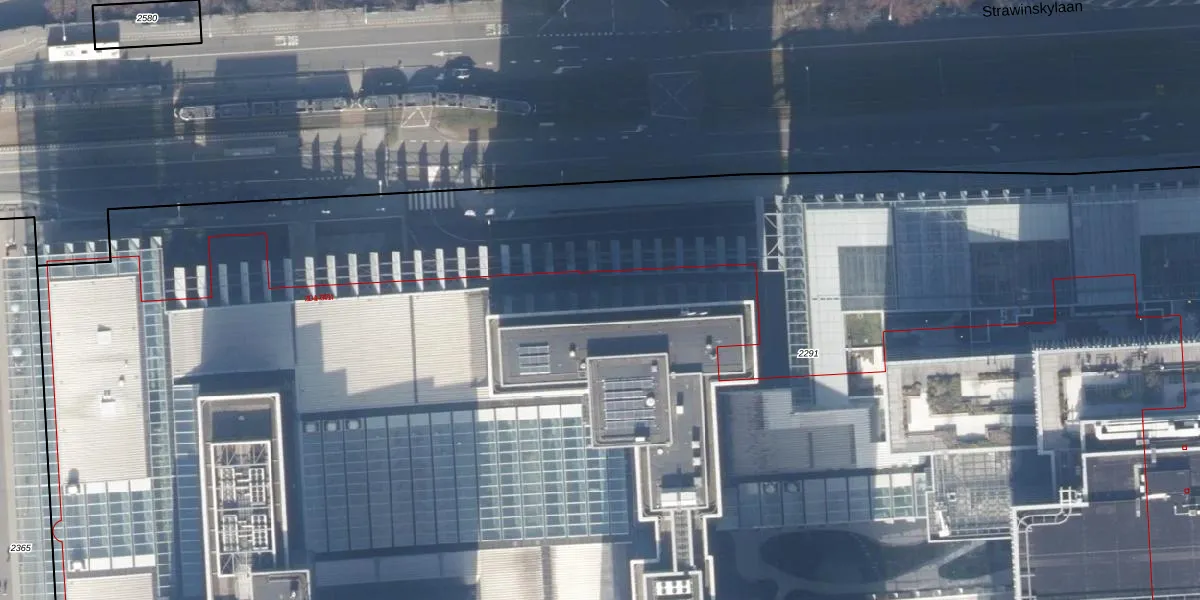 Het perceel waarop Strawinskylaan 1 staat heeft een oppervlakte van 1,8 ha. Dit is een zeer groot perceel. De perceeloppervlakte wordt geregistreerd door het Kadaster. Gedetailleerde informatie over de maten van dit perceel kunt u vinden in het rapport Kadastrale kaart met maatvoering van Strawinskylaan 1.