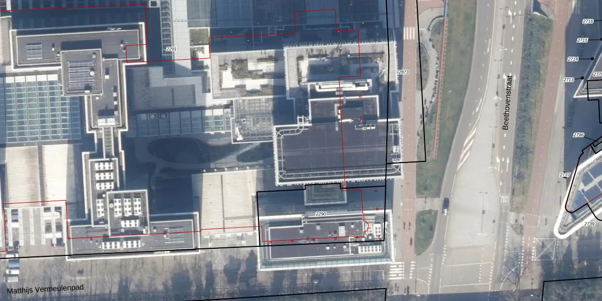 Het perceel waarop Strawinskylaan 1059 staat heeft een oppervlakte van 1,8 ha. Dit is een zeer groot perceel. De perceeloppervlakte wordt geregistreerd door het Kadaster. Gedetailleerde informatie over de maten van dit perceel kunt u vinden in het rapport Kadastrale kaart met maatvoering van Strawinskylaan 1059.