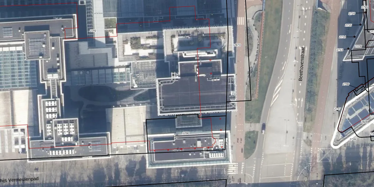 Het perceel waarop Strawinskylaan 1065 staat heeft een oppervlakte van 1,8 ha. Dit is een zeer groot perceel. De perceeloppervlakte wordt geregistreerd door het Kadaster. Gedetailleerde informatie over de maten van dit perceel kunt u vinden in het rapport Kadastrale kaart met maatvoering van Strawinskylaan 1065.