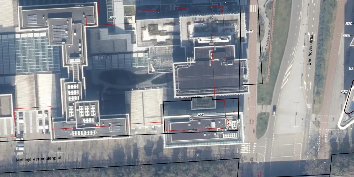 Het perceel waarop Strawinskylaan 1163 staat heeft een oppervlakte van 1,8 ha. Dit is een zeer groot perceel. De perceeloppervlakte wordt geregistreerd door het Kadaster. Gedetailleerde informatie over de maten van dit perceel kunt u vinden in het rapport Kadastrale kaart met maatvoering van Strawinskylaan 1163.