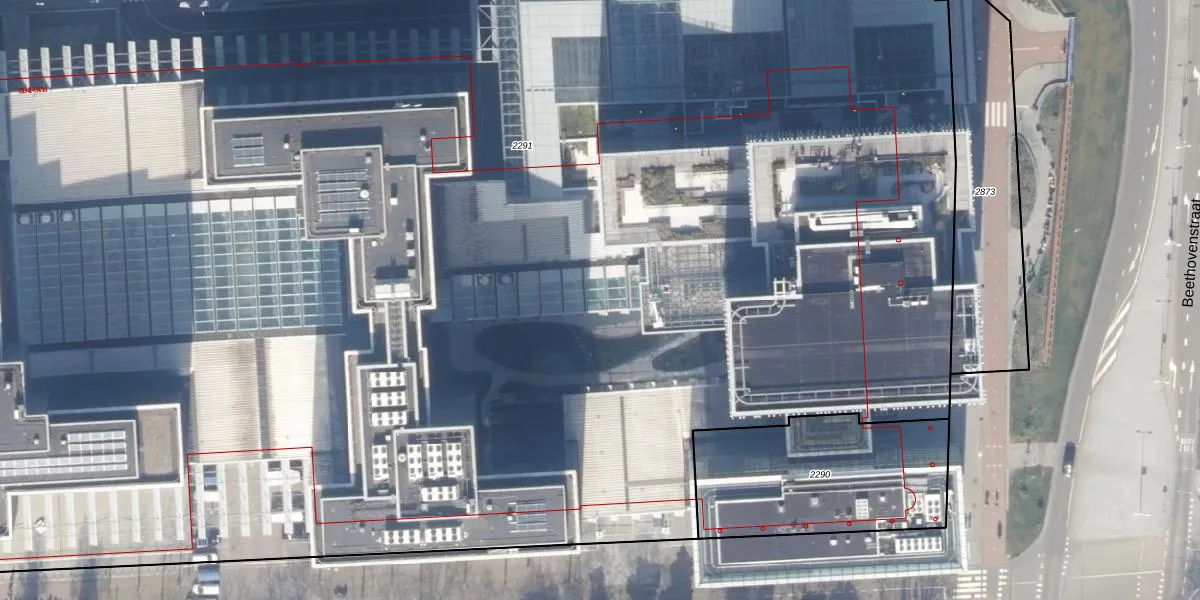 Het perceel waarop Strawinskylaan 1369 staat heeft een oppervlakte van 1,8 ha. Dit is een zeer groot perceel. De perceeloppervlakte wordt geregistreerd door het Kadaster. Gedetailleerde informatie over de maten van dit perceel kunt u vinden in het rapport Kadastrale kaart met maatvoering van Strawinskylaan 1369.