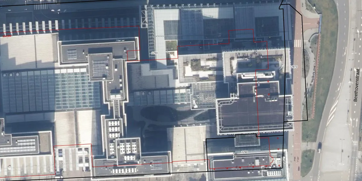 Het perceel waarop Strawinskylaan 1463 staat heeft een oppervlakte van 1,8 ha. Dit is een zeer groot perceel. De perceeloppervlakte wordt geregistreerd door het Kadaster. Gedetailleerde informatie over de maten van dit perceel kunt u vinden in het rapport Kadastrale kaart met maatvoering van Strawinskylaan 1463.