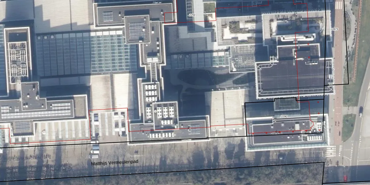 Het perceel waarop Strawinskylaan 1755 staat heeft een oppervlakte van 1,8 ha. Dit is een zeer groot perceel. De perceeloppervlakte wordt geregistreerd door het Kadaster. Gedetailleerde informatie over de maten van dit perceel kunt u vinden in het rapport Kadastrale kaart met maatvoering van Strawinskylaan 1755.
