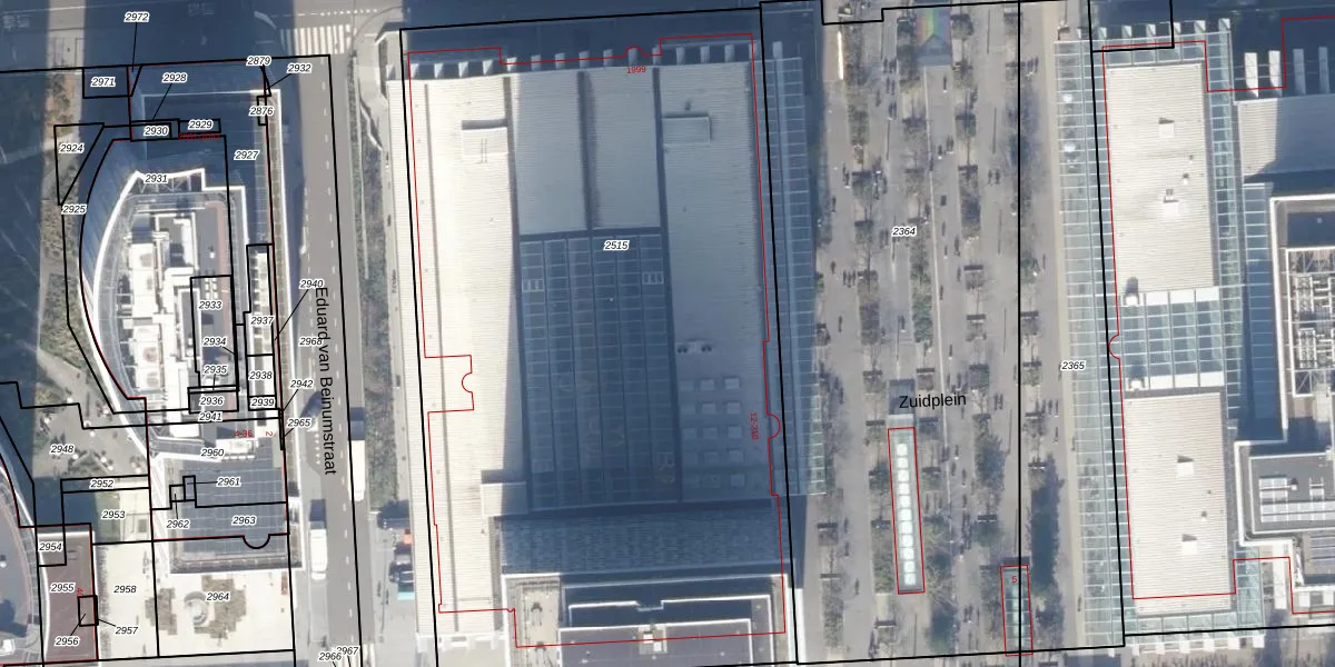 Het perceel waarop Strawinskylaan 1959 staat heeft een oppervlakte van 5300 m². Dit is een zeer groot perceel. De perceeloppervlakte wordt geregistreerd door het Kadaster. Gedetailleerde informatie over de maten van dit perceel kunt u vinden in het rapport Kadastrale kaart met maatvoering van Strawinskylaan 1959.