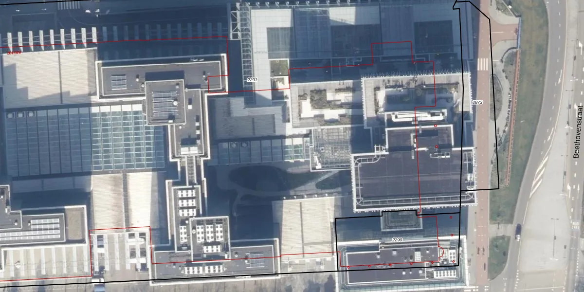 Het perceel waarop Strawinskylaan 557 staat heeft een oppervlakte van 1,8 ha. Dit is een zeer groot perceel. De perceeloppervlakte wordt geregistreerd door het Kadaster. Gedetailleerde informatie over de maten van dit perceel kunt u vinden in het rapport Kadastrale kaart met maatvoering van Strawinskylaan 557.