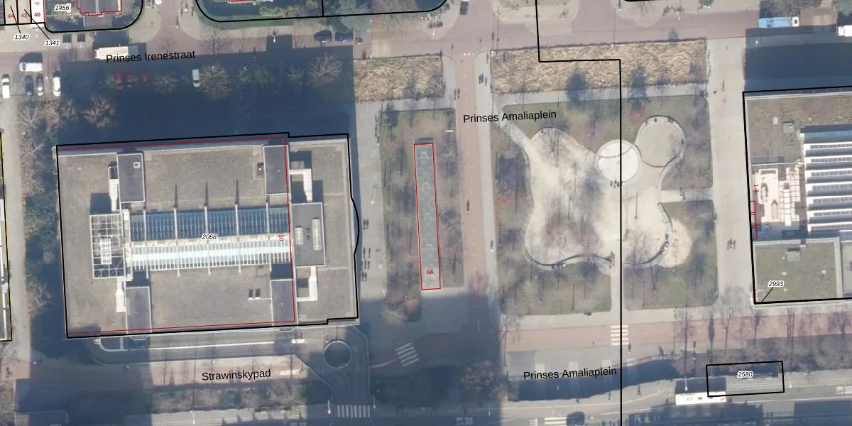 Het perceel waarop Strawinskylaan 8-A staat heeft een oppervlakte van 15,4 ha. Dit is een zeer groot perceel. De perceeloppervlakte wordt geregistreerd door het Kadaster. Gedetailleerde informatie over de maten van dit perceel kunt u vinden in het rapport Kadastrale kaart met maatvoering van Strawinskylaan 8-A.
