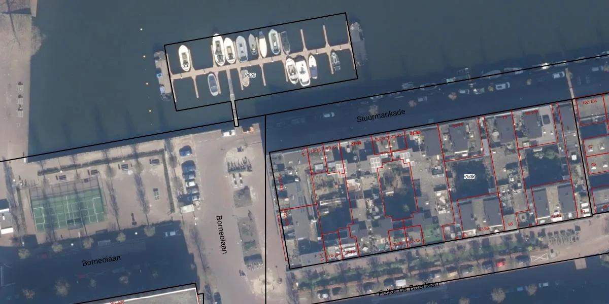 Het perceel waarop Stuurmankade 10 staat heeft een oppervlakte van 4140 m². Dit is een zeer groot perceel. De perceeloppervlakte wordt geregistreerd door het Kadaster. Gedetailleerde informatie over de maten van dit perceel kunt u vinden in het rapport Kadastrale kaart met maatvoering van Stuurmankade 10.