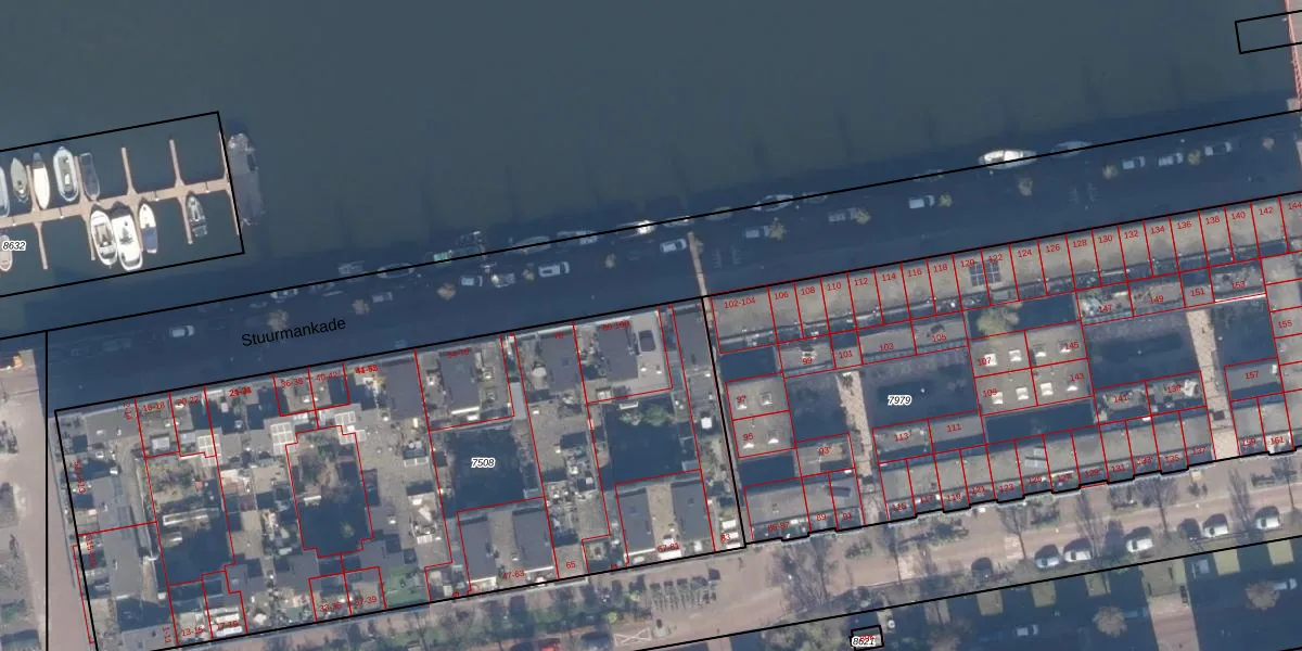 Stuurmankade 100 is gelegen op kadastraal perceel ASD02A7508. Deze kadastrale aanduiding is uniek en wordt gebruikt door het Kadaster om eigendomsrechten en andere zakelijke rechten vast te leggen. Het perceel maakt onderdeel uit van de kadastrale gemeente Amsterdam.
