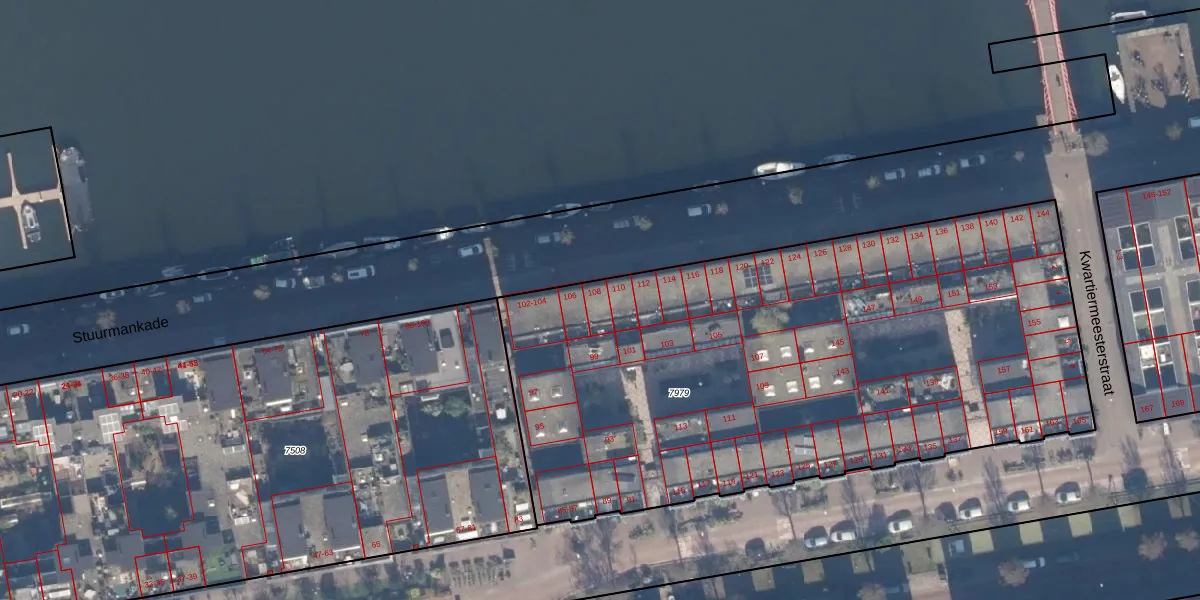 Stuurmankade 108 is gelegen op kadastraal perceel ASD02A7979. Deze kadastrale aanduiding is uniek en wordt gebruikt door het Kadaster om eigendomsrechten en andere zakelijke rechten vast te leggen. Het perceel maakt onderdeel uit van de kadastrale gemeente Amsterdam.