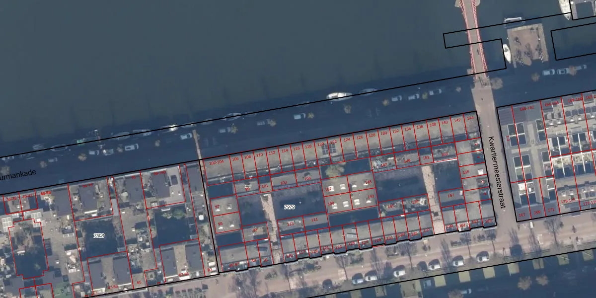 Stuurmankade 116 is gelegen op kadastraal perceel ASD02A7979. Deze kadastrale aanduiding is uniek en wordt gebruikt door het Kadaster om eigendomsrechten en andere zakelijke rechten vast te leggen. Het perceel maakt onderdeel uit van de kadastrale gemeente Amsterdam.