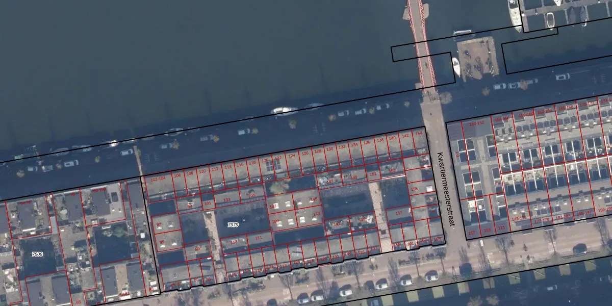 Het adres is gelegen op perceel 7979 in de sectie A en de kadastrale gemeente Amsterdam. De kadastrale aanduiding is aldus ASD02-A-7979. De oppervlakte van het perceel is 3661 m². Dat is groter dan gemiddeld in Amsterdam, waar de gemiddelde perceeloppervlakte op 2763,93 m² ligt. Het grootste perceel in de kadastrale gemeente is 14,3 ha. Het kleinste perceel heeft een oppervlakte van 0 m². Op het perceel zijn 68 adressen aanwezig. De huidige grenzen van het perceel zijn digitaal in de Basisregistratie Kadaster (BRK) geregistreerd op 09-02-2006.