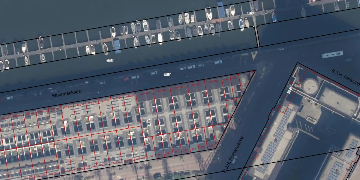 Het perceel waarop Stuurmankade 240 staat heeft een oppervlakte van 7314 m². Dit is een zeer groot perceel. De perceeloppervlakte wordt geregistreerd door het Kadaster. Gedetailleerde informatie over de maten van dit perceel kunt u vinden in het rapport Kadastrale kaart met maatvoering van Stuurmankade 240.