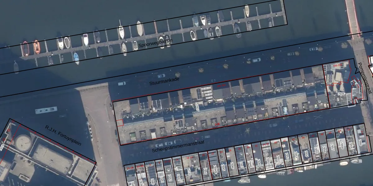 Het perceel waarop Stuurmankade 278 staat heeft een oppervlakte van 2743 m². Dit is een zeer groot perceel. De perceeloppervlakte wordt geregistreerd door het Kadaster. Gedetailleerde informatie over de maten van dit perceel kunt u vinden in het rapport Kadastrale kaart met maatvoering van Stuurmankade 278.