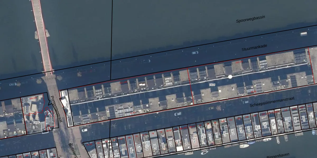 Het perceel waarop Stuurmankade 334 staat heeft een oppervlakte van 3917 m². Dit is een zeer groot perceel. De perceeloppervlakte wordt geregistreerd door het Kadaster. Gedetailleerde informatie over de maten van dit perceel kunt u vinden in het rapport Kadastrale kaart met maatvoering van Stuurmankade 334.