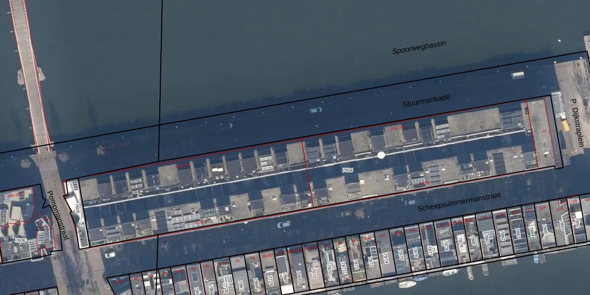 Stuurmankade 340 is gelegen op kadastraal perceel ASD02A7604. Deze kadastrale aanduiding is uniek en wordt gebruikt door het Kadaster om eigendomsrechten en andere zakelijke rechten vast te leggen. Het perceel maakt onderdeel uit van de kadastrale gemeente Amsterdam.