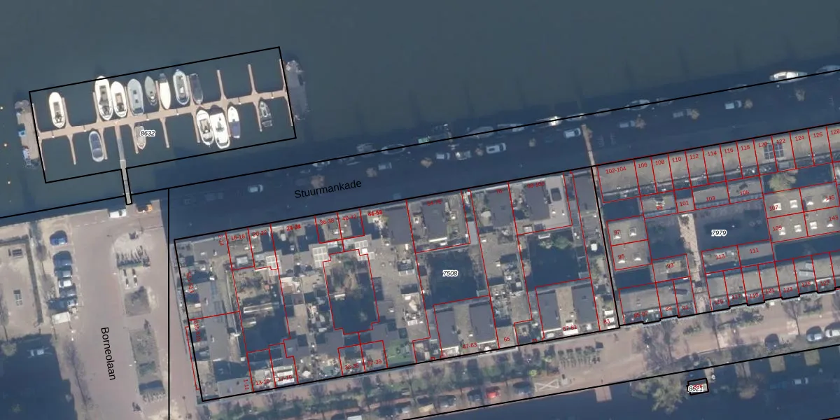 Stuurmankade 54 is gelegen op kadastraal perceel ASD02A7508. Deze kadastrale aanduiding is uniek en wordt gebruikt door het Kadaster om eigendomsrechten en andere zakelijke rechten vast te leggen. Het perceel maakt onderdeel uit van de kadastrale gemeente Amsterdam.
