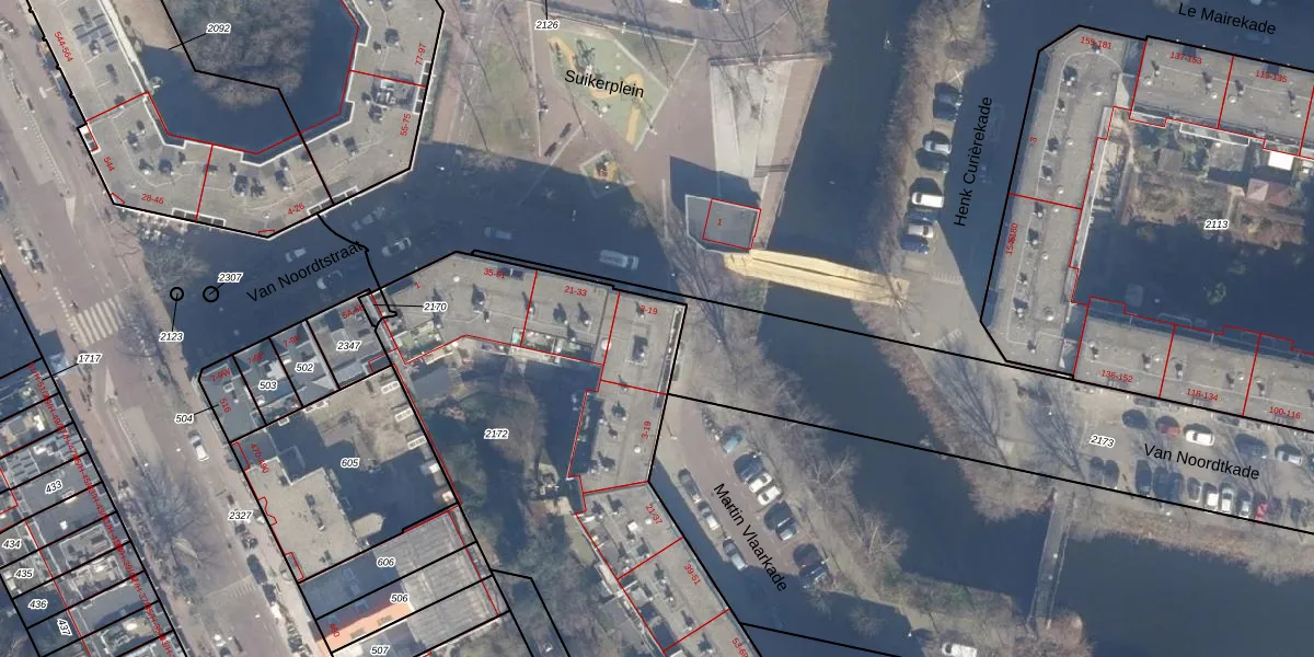 Suikerplein 11 is gelegen op kadastraal perceel ASD20X2172. Deze kadastrale aanduiding is uniek en wordt gebruikt door het Kadaster om eigendomsrechten en andere zakelijke rechten vast te leggen. Het perceel maakt onderdeel uit van de kadastrale gemeente Amsterdam.