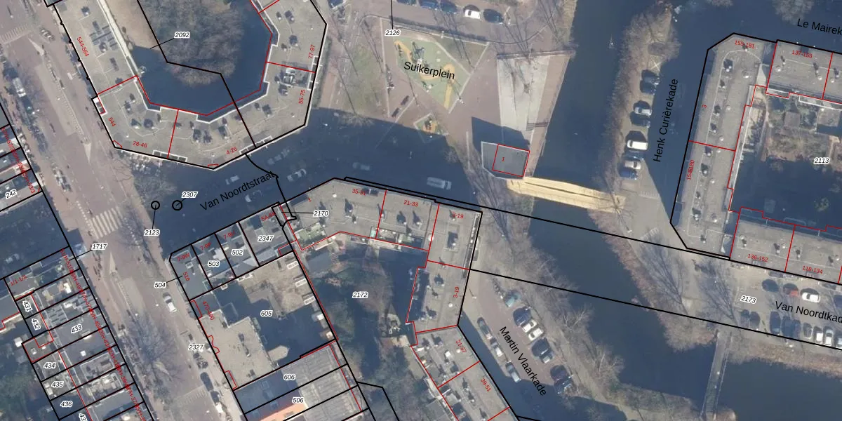 Suikerplein 21 is gelegen op kadastraal perceel ASD20X2172. Deze kadastrale aanduiding is uniek en wordt gebruikt door het Kadaster om eigendomsrechten en andere zakelijke rechten vast te leggen. Het perceel maakt onderdeel uit van de kadastrale gemeente Amsterdam.