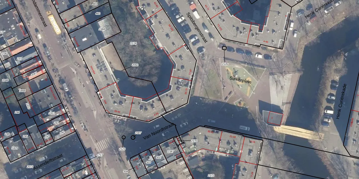 Suikerplein 59 is gelegen op kadastraal perceel ASD20X2114. Deze kadastrale aanduiding is uniek en wordt gebruikt door het Kadaster om eigendomsrechten en andere zakelijke rechten vast te leggen. Het perceel maakt onderdeel uit van de kadastrale gemeente Amsterdam.