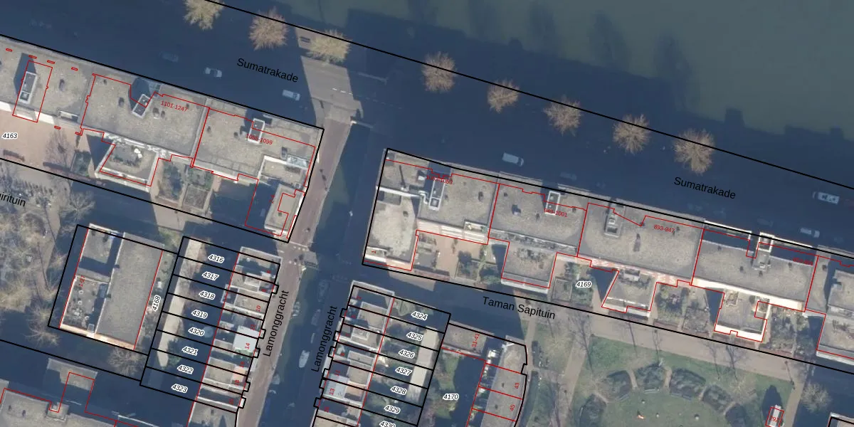 Het perceel waarop Sumatrakade 1019 staat heeft een oppervlakte van 4316 m². Dit is een zeer groot perceel. De perceeloppervlakte wordt geregistreerd door het Kadaster. Gedetailleerde informatie over de maten van dit perceel kunt u vinden in het rapport Kadastrale kaart met maatvoering van Sumatrakade 1019.