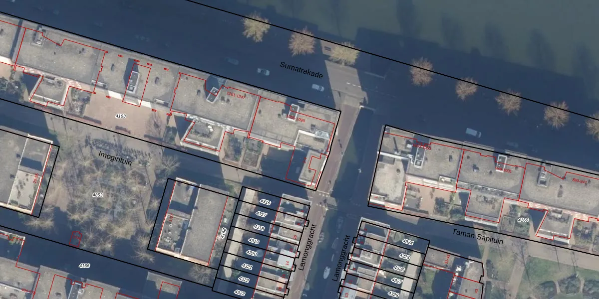 Het perceel waarop Sumatrakade 1073 staat heeft een oppervlakte van 3770 m². Dit is een zeer groot perceel. De perceeloppervlakte wordt geregistreerd door het Kadaster. Gedetailleerde informatie over de maten van dit perceel kunt u vinden in het rapport Kadastrale kaart met maatvoering van Sumatrakade 1073.