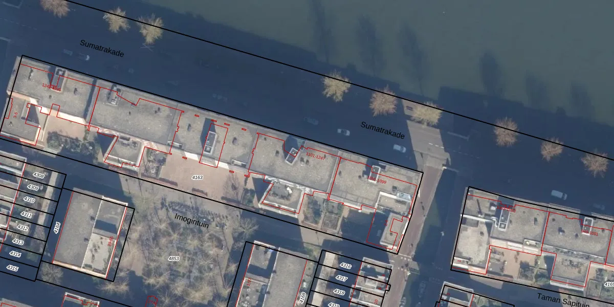 Sumatrakade 1131 is gelegen op kadastraal perceel ASD10N4163. Deze kadastrale aanduiding is uniek en wordt gebruikt door het Kadaster om eigendomsrechten en andere zakelijke rechten vast te leggen. Het perceel maakt onderdeel uit van de kadastrale gemeente Amsterdam.