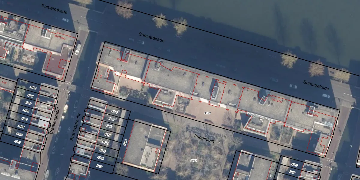 Sumatrakade 1247 is gelegen op kadastraal perceel ASD10N4163. Deze kadastrale aanduiding is uniek en wordt gebruikt door het Kadaster om eigendomsrechten en andere zakelijke rechten vast te leggen. Het perceel maakt onderdeel uit van de kadastrale gemeente Amsterdam.
