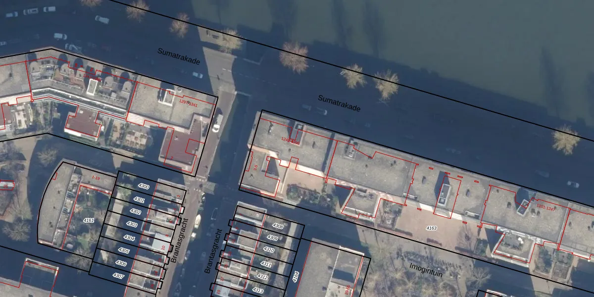 Sumatrakade 1257 is gelegen op kadastraal perceel ASD10N4163. Deze kadastrale aanduiding is uniek en wordt gebruikt door het Kadaster om eigendomsrechten en andere zakelijke rechten vast te leggen. Het perceel maakt onderdeel uit van de kadastrale gemeente Amsterdam.