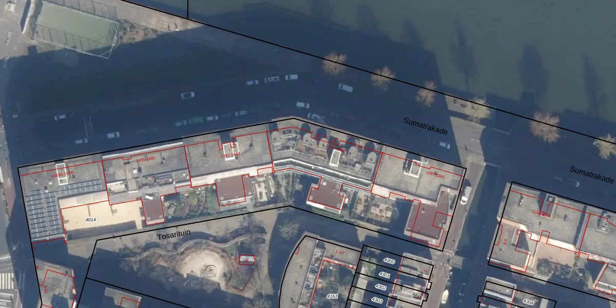 Sumatrakade 1367 is gelegen op kadastraal perceel ASD10N4014. Deze kadastrale aanduiding is uniek en wordt gebruikt door het Kadaster om eigendomsrechten en andere zakelijke rechten vast te leggen. Het perceel maakt onderdeel uit van de kadastrale gemeente Amsterdam.