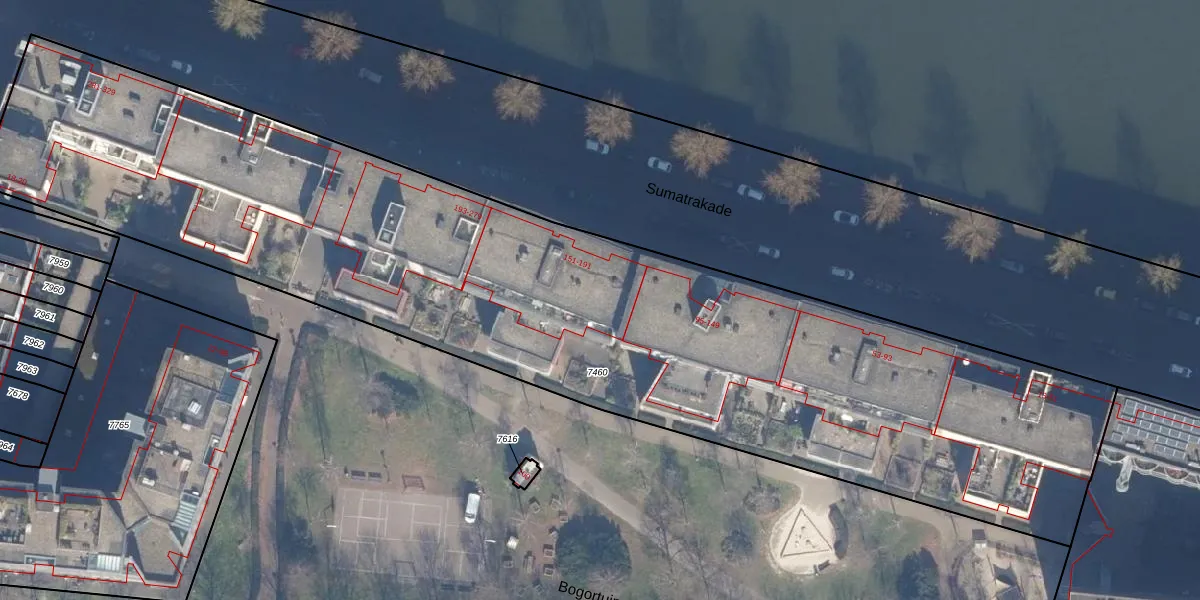 Het perceel waarop Sumatrakade 189 staat heeft een oppervlakte van 5343 m². Dit is een zeer groot perceel. De perceeloppervlakte wordt geregistreerd door het Kadaster. Gedetailleerde informatie over de maten van dit perceel kunt u vinden in het rapport Kadastrale kaart met maatvoering van Sumatrakade 189.
