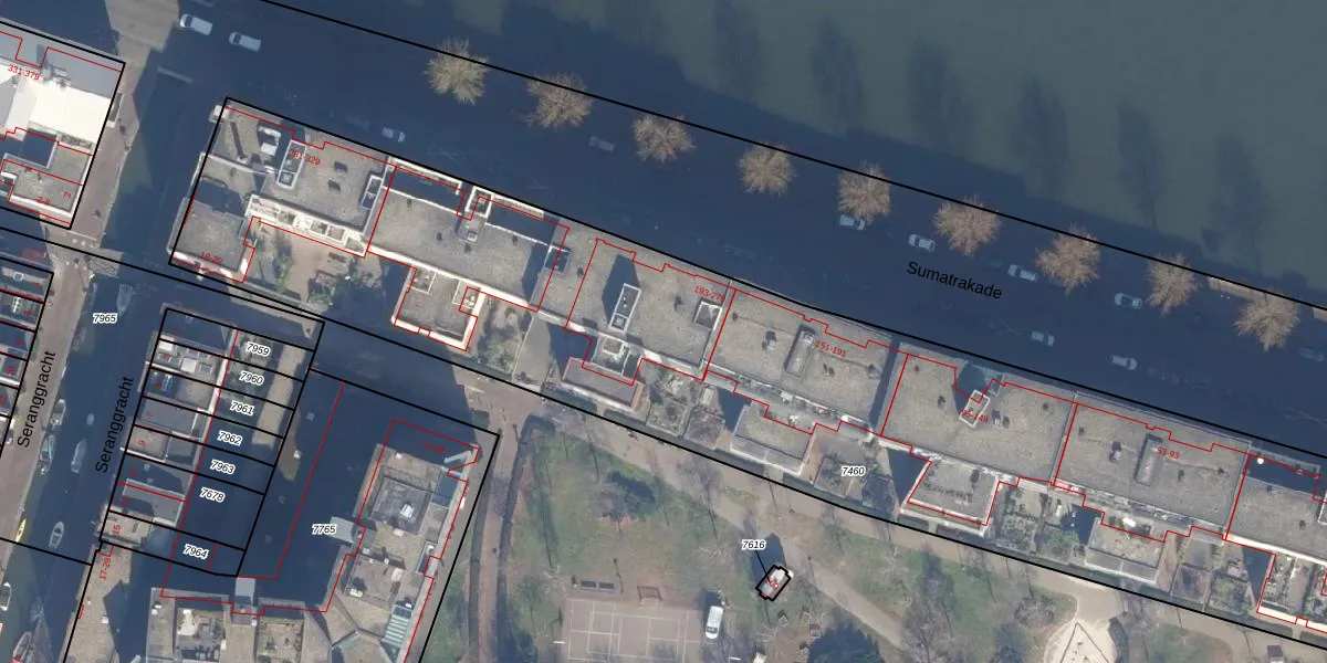 Het perceel waarop Sumatrakade 229 staat heeft een oppervlakte van 5343 m². Dit is een zeer groot perceel. De perceeloppervlakte wordt geregistreerd door het Kadaster. Gedetailleerde informatie over de maten van dit perceel kunt u vinden in het rapport Kadastrale kaart met maatvoering van Sumatrakade 229.