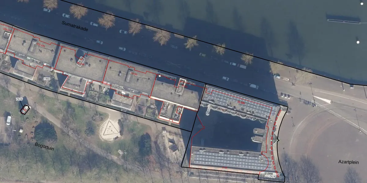Het perceel waarop Sumatrakade 25 staat heeft een oppervlakte van 5343 m². Dit is een zeer groot perceel. De perceeloppervlakte wordt geregistreerd door het Kadaster. Gedetailleerde informatie over de maten van dit perceel kunt u vinden in het rapport Kadastrale kaart met maatvoering van Sumatrakade 25.