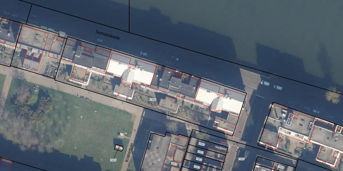 Sumatrakade 413 is gelegen op kadastraal perceel ASD02A7966. Deze kadastrale aanduiding is uniek en wordt gebruikt door het Kadaster om eigendomsrechten en andere zakelijke rechten vast te leggen. Het perceel maakt onderdeel uit van de kadastrale gemeente Amsterdam.
