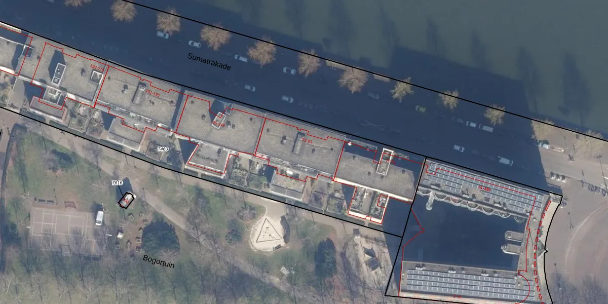 Het perceel waarop Sumatrakade 59 staat heeft een oppervlakte van 5343 m². Dit is een zeer groot perceel. De perceeloppervlakte wordt geregistreerd door het Kadaster. Gedetailleerde informatie over de maten van dit perceel kunt u vinden in het rapport Kadastrale kaart met maatvoering van Sumatrakade 59.