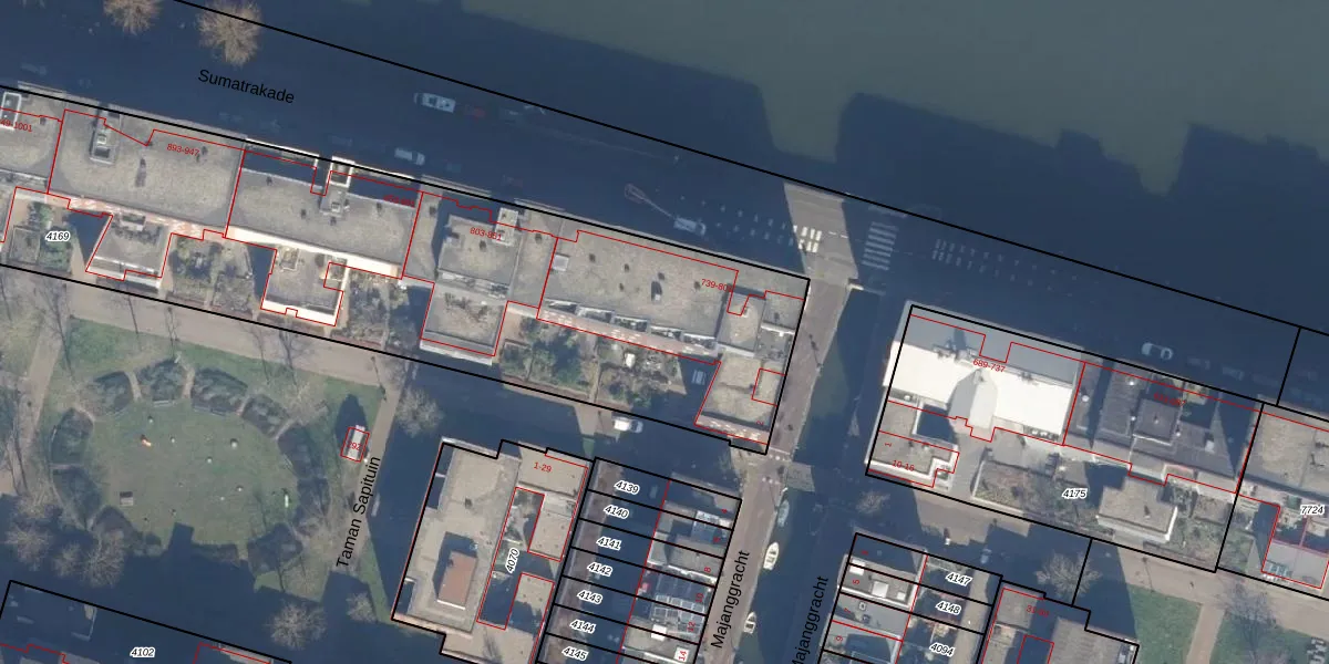 Het perceel waarop Sumatrakade 759 staat heeft een oppervlakte van 4316 m². Dit is een zeer groot perceel. De perceeloppervlakte wordt geregistreerd door het Kadaster. Gedetailleerde informatie over de maten van dit perceel kunt u vinden in het rapport Kadastrale kaart met maatvoering van Sumatrakade 759.