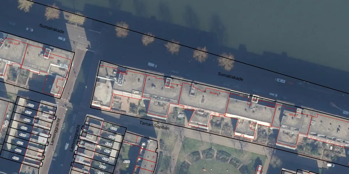 Het perceel waarop Sumatrakade 949 staat heeft een oppervlakte van 4316 m². Dit is een zeer groot perceel. De perceeloppervlakte wordt geregistreerd door het Kadaster. Gedetailleerde informatie over de maten van dit perceel kunt u vinden in het rapport Kadastrale kaart met maatvoering van Sumatrakade 949.