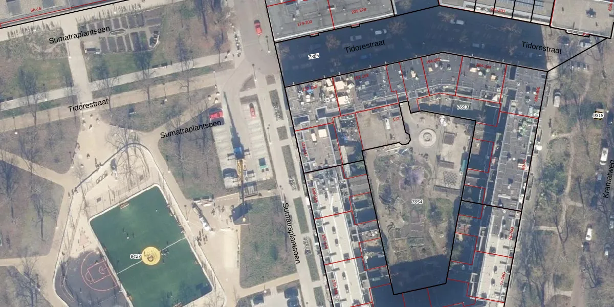 Sumatraplantsoen 123 is gelegen op kadastraal perceel ASD19W7653. Deze kadastrale aanduiding is uniek en wordt gebruikt door het Kadaster om eigendomsrechten en andere zakelijke rechten vast te leggen. Het perceel maakt onderdeel uit van de kadastrale gemeente Amsterdam.
