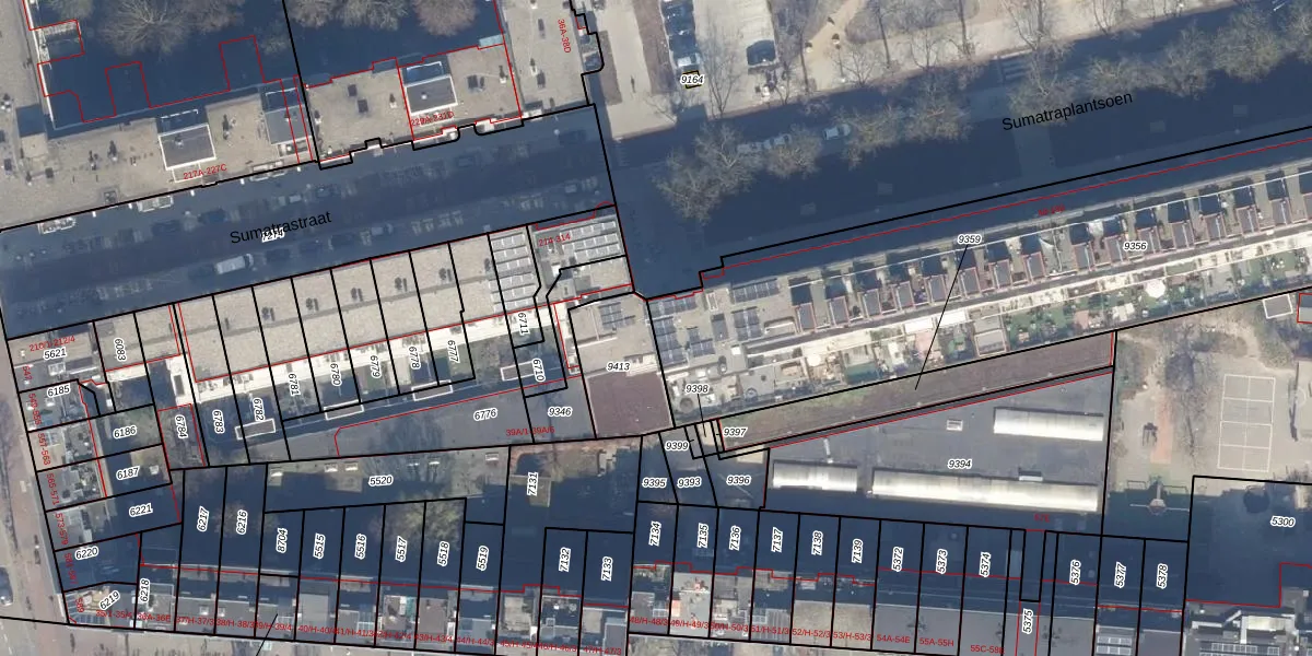 Het perceel waarop Sumatraplantsoen 48 staat heeft een oppervlakte van 3306 m². Dit is een zeer groot perceel. De perceeloppervlakte wordt geregistreerd door het Kadaster. Gedetailleerde informatie over de maten van dit perceel kunt u vinden in het rapport Kadastrale kaart met maatvoering van Sumatraplantsoen 48.