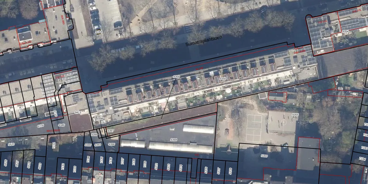 Het perceel waarop Sumatraplantsoen 98 staat heeft een oppervlakte van 3306 m². Dit is een zeer groot perceel. De perceeloppervlakte wordt geregistreerd door het Kadaster. Gedetailleerde informatie over de maten van dit perceel kunt u vinden in het rapport Kadastrale kaart met maatvoering van Sumatraplantsoen 98.