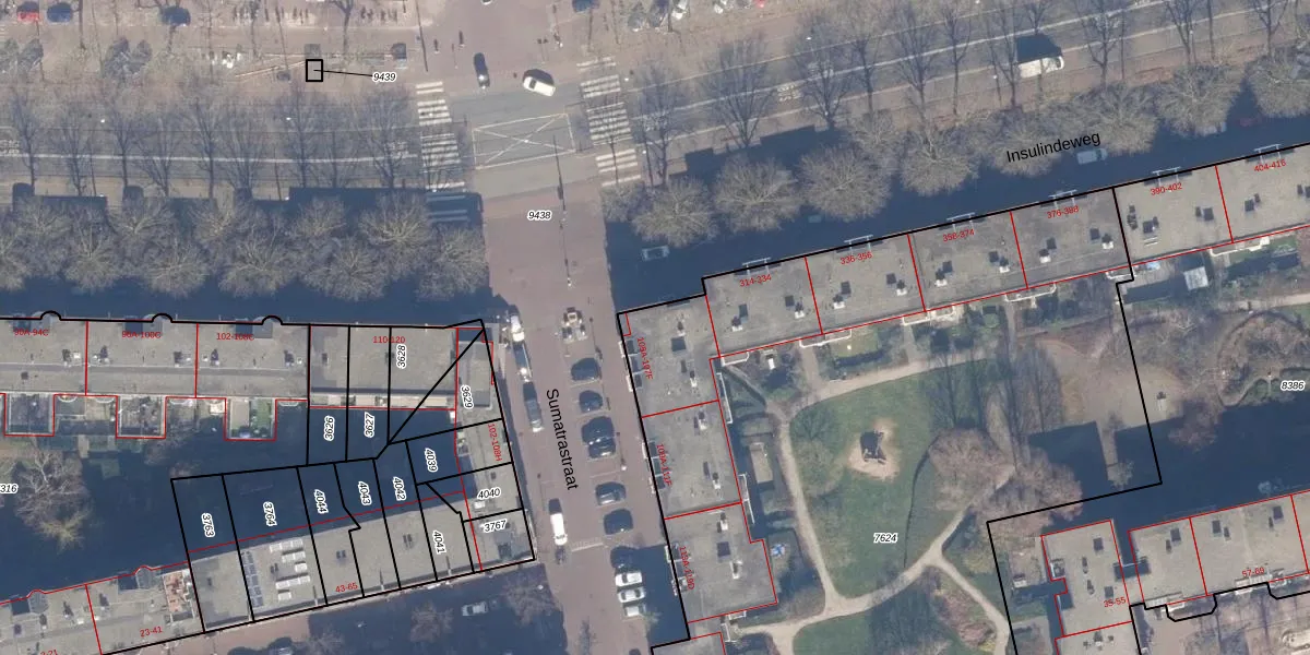 Sumatrastraat 105-B is gelegen op kadastraal perceel ASD19W7624. Deze kadastrale aanduiding is uniek en wordt gebruikt door het Kadaster om eigendomsrechten en andere zakelijke rechten vast te leggen. Het perceel maakt onderdeel uit van de kadastrale gemeente Amsterdam.
