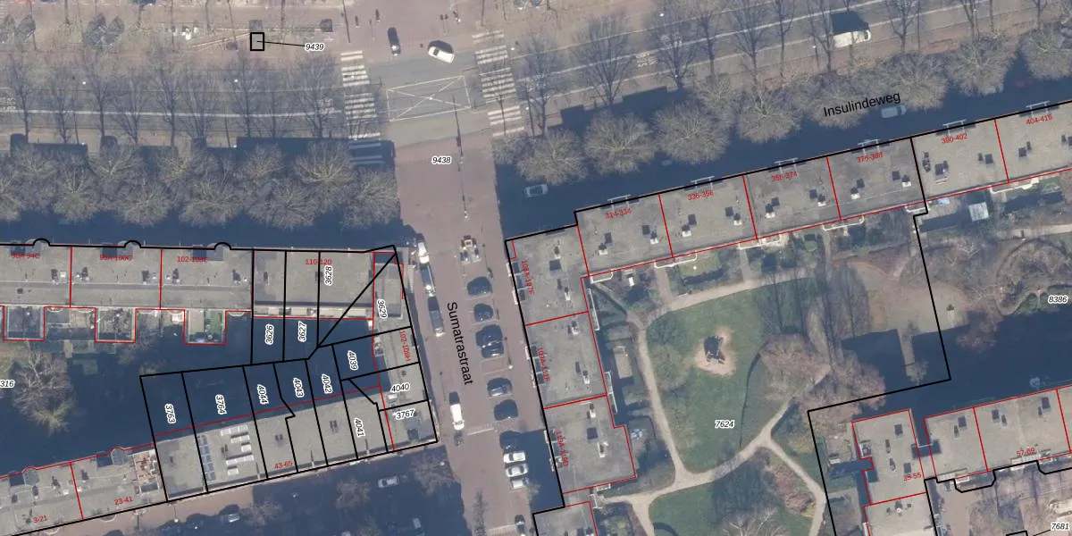 Sumatrastraat 105-E is gelegen op kadastraal perceel ASD19W7624. Deze kadastrale aanduiding is uniek en wordt gebruikt door het Kadaster om eigendomsrechten en andere zakelijke rechten vast te leggen. Het perceel maakt onderdeel uit van de kadastrale gemeente Amsterdam.