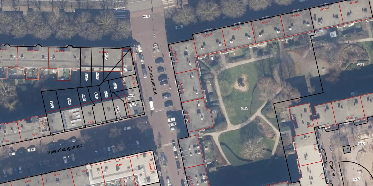 Sumatrastraat 111-B is gelegen op kadastraal perceel ASD19W7624. Deze kadastrale aanduiding is uniek en wordt gebruikt door het Kadaster om eigendomsrechten en andere zakelijke rechten vast te leggen. Het perceel maakt onderdeel uit van de kadastrale gemeente Amsterdam.