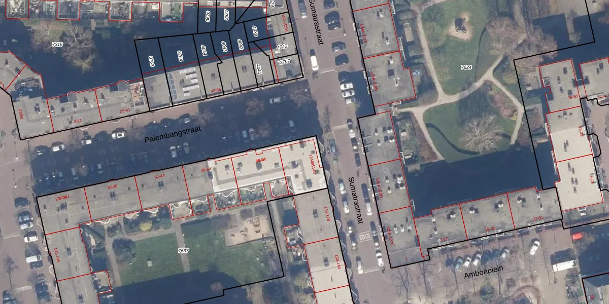 Sumatrastraat 114-A is gelegen op kadastraal perceel ASD19W7637. Deze kadastrale aanduiding is uniek en wordt gebruikt door het Kadaster om eigendomsrechten en andere zakelijke rechten vast te leggen. Het perceel maakt onderdeel uit van de kadastrale gemeente Amsterdam.