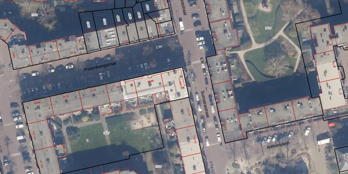 Sumatrastraat 114-S is gelegen op kadastraal perceel ASD19W7637. Deze kadastrale aanduiding is uniek en wordt gebruikt door het Kadaster om eigendomsrechten en andere zakelijke rechten vast te leggen. Het perceel maakt onderdeel uit van de kadastrale gemeente Amsterdam.