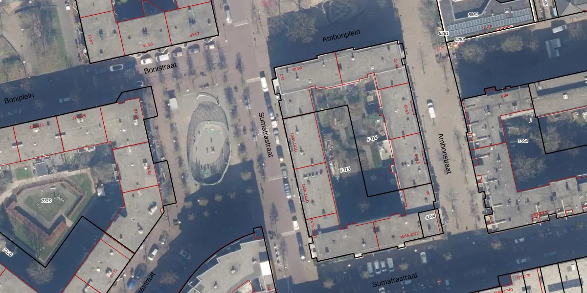 Sumatrastraat 141-A is gelegen op kadastraal perceel ASD19W7315. Deze kadastrale aanduiding is uniek en wordt gebruikt door het Kadaster om eigendomsrechten en andere zakelijke rechten vast te leggen. Het perceel maakt onderdeel uit van de kadastrale gemeente Amsterdam.