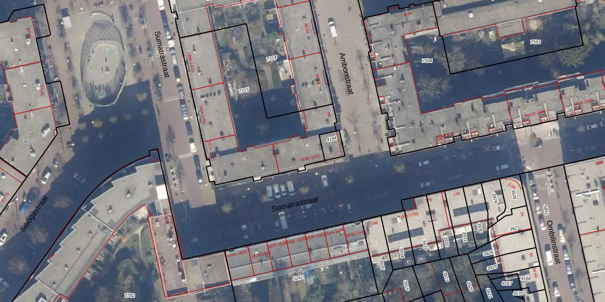 Sumatrastraat 155-C is gelegen op kadastraal perceel ASD19W7315. Deze kadastrale aanduiding is uniek en wordt gebruikt door het Kadaster om eigendomsrechten en andere zakelijke rechten vast te leggen. Het perceel maakt onderdeel uit van de kadastrale gemeente Amsterdam.
