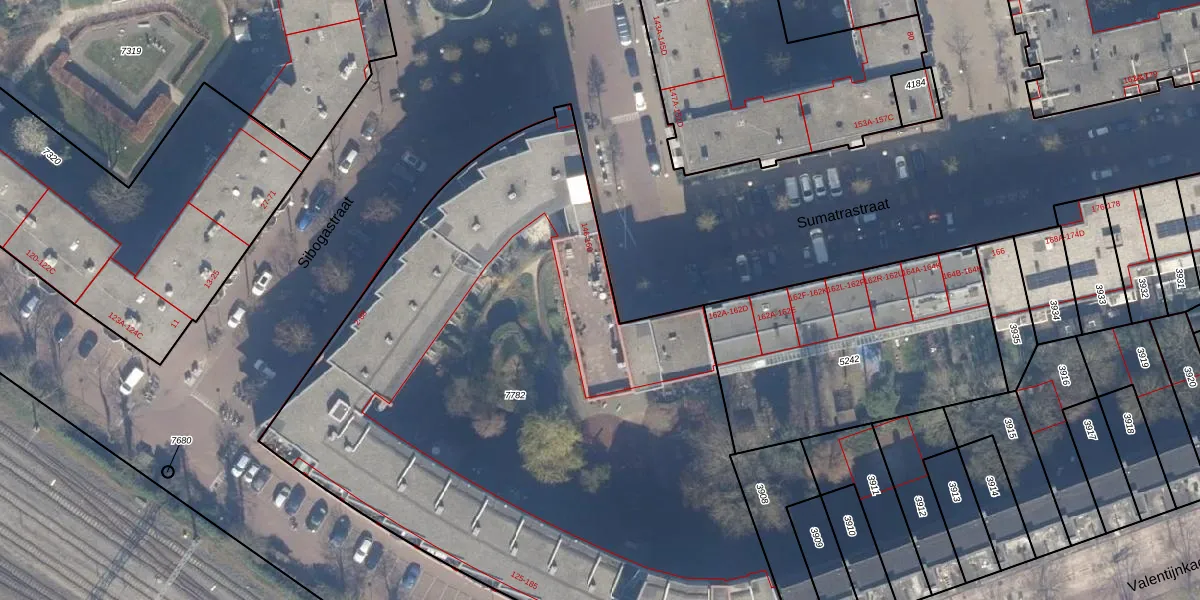 Het perceel waarop Sumatrastraat 158 staat heeft een oppervlakte van 4367 m². Dit is een zeer groot perceel. De perceeloppervlakte wordt geregistreerd door het Kadaster. Gedetailleerde informatie over de maten van dit perceel kunt u vinden in het rapport Kadastrale kaart met maatvoering van Sumatrastraat 158.
