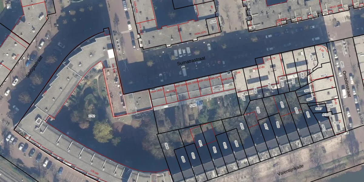 Het perceel waarop Sumatrastraat 162-H staat heeft een oppervlakte van 1163 m². Dit is een zeer groot perceel. De perceeloppervlakte wordt geregistreerd door het Kadaster. Gedetailleerde informatie over de maten van dit perceel kunt u vinden in het rapport Kadastrale kaart met maatvoering van Sumatrastraat 162-H.